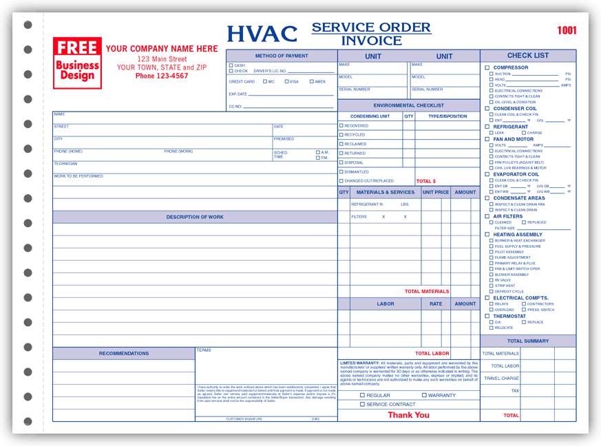 6531 HVAC Service Order Invoice